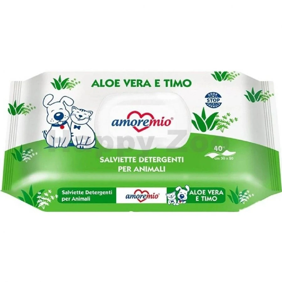 Čistící ubrousky z Itálie Amore Mio pomáhají čistit a jemně parfémovat domácího mazlíčka. Čistící, osvěžující a parfémované ubrousky jsou ideální pro rychlou očistu srsti doma, ale i na procházkách nebo při venčení. Mnoho chovatelů si je oblíbila i na cestování se zvířetem, a to nejen v letním období. Složení je speciálně formulováno tak, aby bylo zabráněno jakékoliv nesnášenlivosti, která se poté projevuje na pokožce a znepříjemňuje zvířete život. Ubrousky Aloe Vera & Thyme jsou doplněny o extrakty z květu slezu, listu meduňky lékařské a plodů šípkové růže. Balení má praktický otvírací uzávěr, díky kterému je možné udržet ubrousky déle vlhké. Zároveň se velmi snadno vytahují z obalu.
