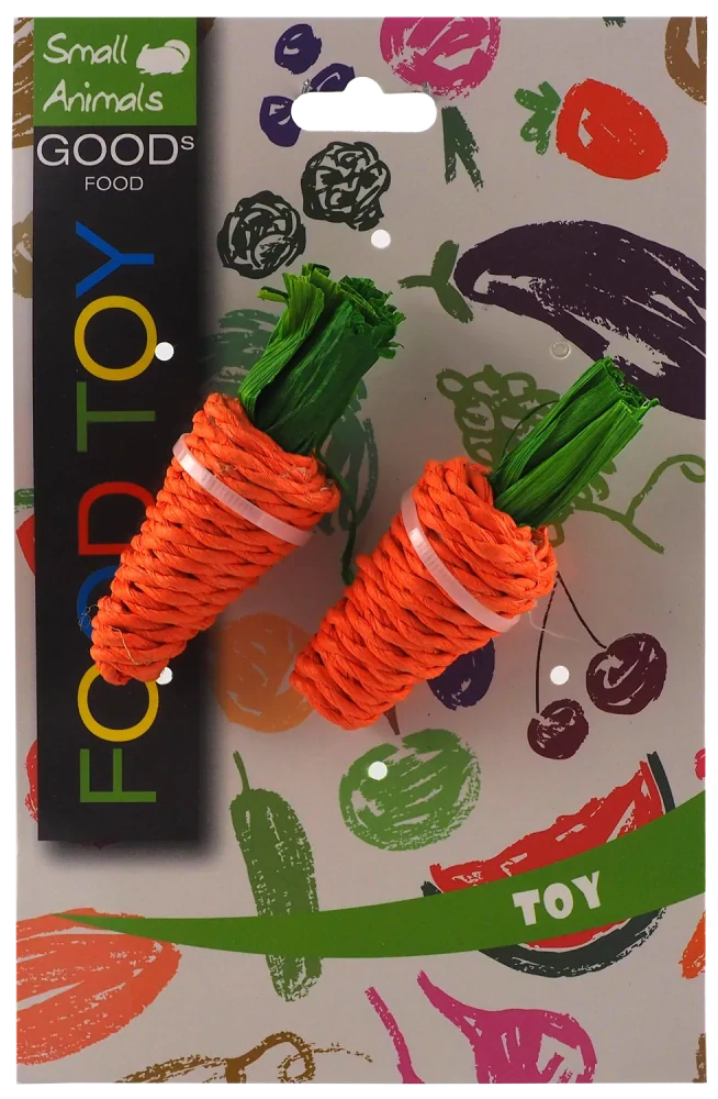 Hračka pletené sisalové mrkvičky vhodné pro králíky a drobné savce. Ideální na broušení zubů a drápků. Vyrobeno z papíru a kukuřičných listů. Obsahuje potravinářská barviva.