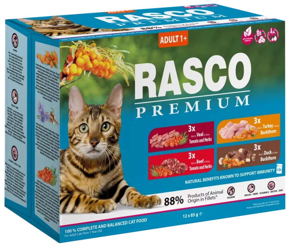 Kapsička Rasco Premium Cat Adult Multipack 12x85gskladem 2 ks169 Kč/ ks