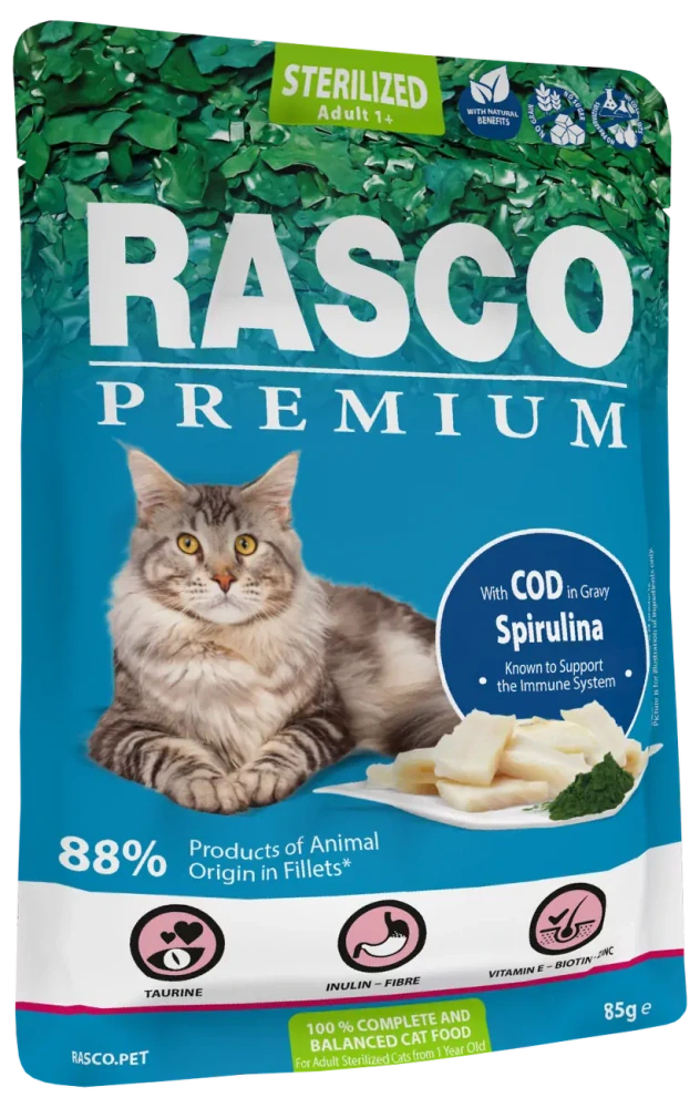- Kapsička Rasco Premium Cat Adult Sterilized Cod in Gravy 85g
