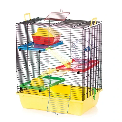 Vícepatrová klec GINO II COLOR je vhodná pro chov páru myšek nebo ostatních menších hlodavců, kteří ocení její bohaté vyžití.Klec má troje dvířka (dvoje ze předu a jedny nahoře) pro snadný kontakt se zvířátky. Součástí klece je plastový domeček, plastový kolotoč, plastová miska a tři plastové žebříky. V kleci dále nalezneme i tři plastová patra.
