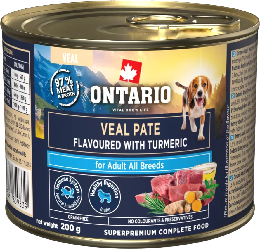 Konzerva Ontario Adult telecí pate s kurkumou - růst svalů a celková vitalita