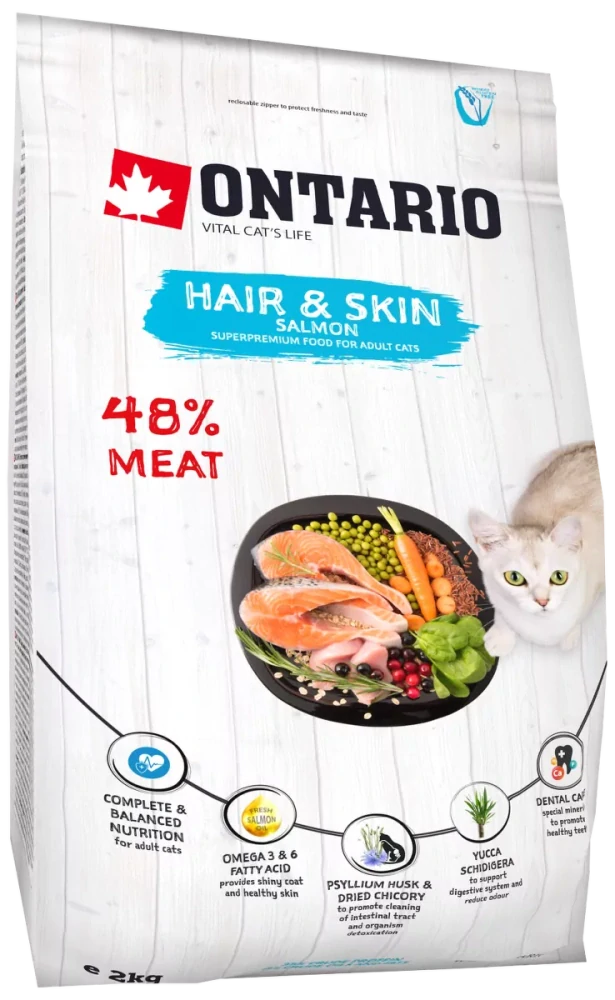 Krmivo Ontario Cat Hair & Skin 2kgSkladem do 7 pracovních dnů od objednání369 Kč/ ks