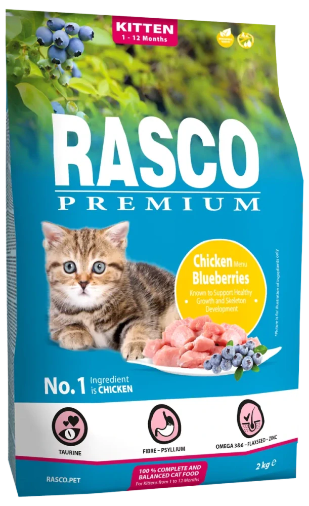 Krmivo Rasco Premium Kitten kuře s borůvkou 2kgskladem 2 ks269 Kč/ ks