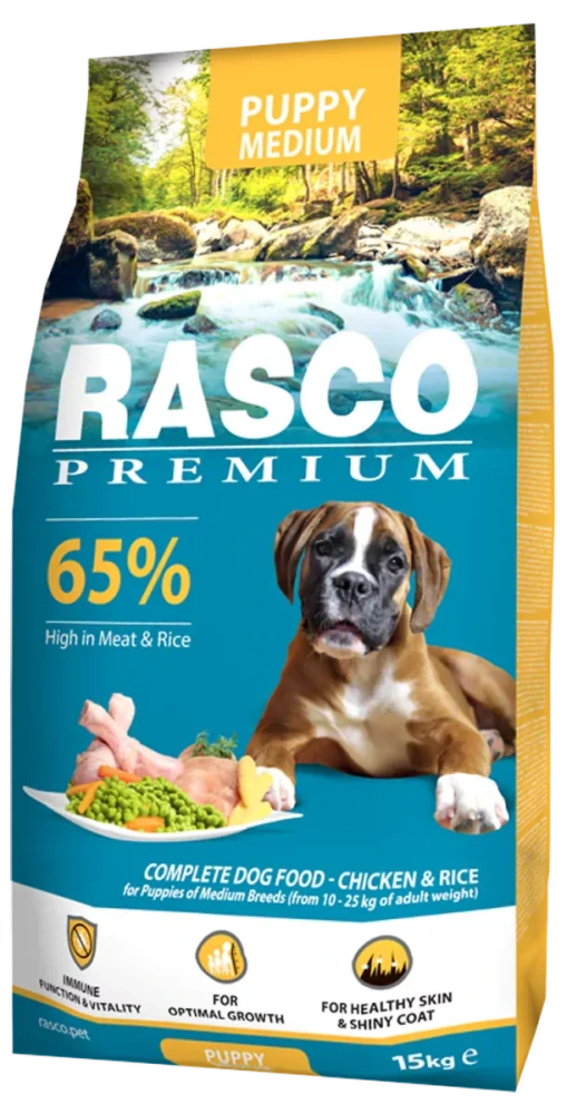 Krmivo Rasco Premium Puppy Medium kuře s rýží 15kg