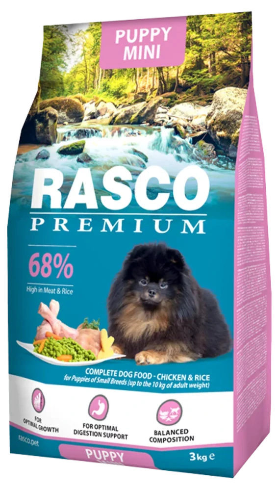 Krmivo Rasco Premium Puppy Mini kuře s rýží 3kgskladem 2 ks309 Kč/ ks