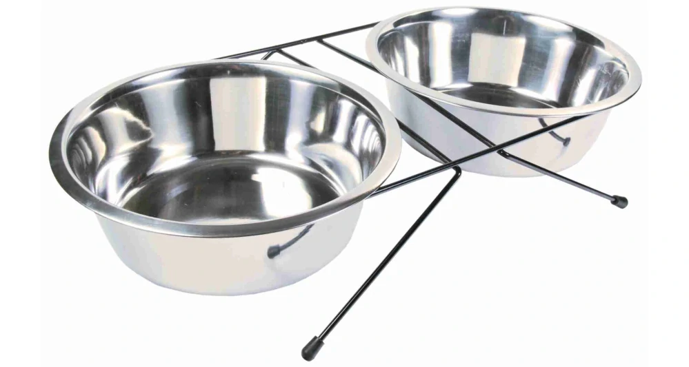Ke stojánku patří dvě misky, vyrobené z kvalitní nerezové oceli, která je známá svou odolností a snadnou údržbou. Nerezové misky jsou oblíbenou volbou pro mnoho majitelů domácích mazlíčků, neboť neabsorbují pachy, nevytvářejí prostředí pro růst bakterií a jejich čištění je velmi jednoduché.