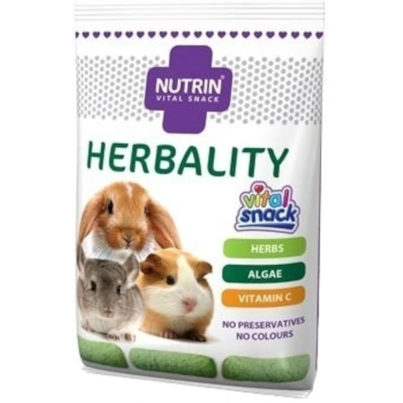Nutrin Vital Snack – HERBALITY je vhodné doplňkové krmivo pro králíky, morčata a činčily ve tvaru oválků.