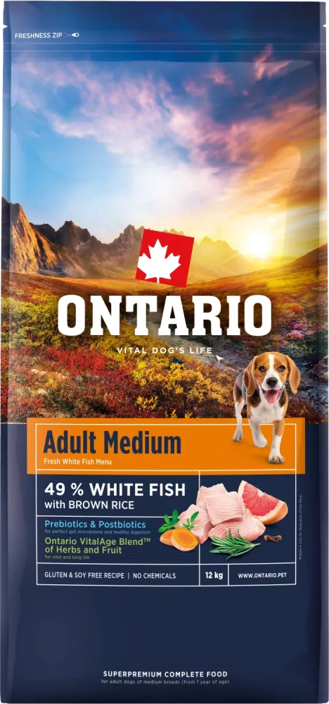 Ontario Adult Medium Fish & Rice 12kgskladem 1 ks1 449 Kč/ ks