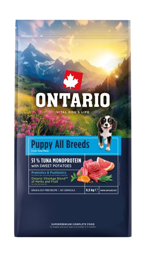 Ontario Puppy&Junior All Breeds Monoprotein Tuna & Sweet Potatoes 6,5kgskladem 2 ks1 049 Kč/ ks