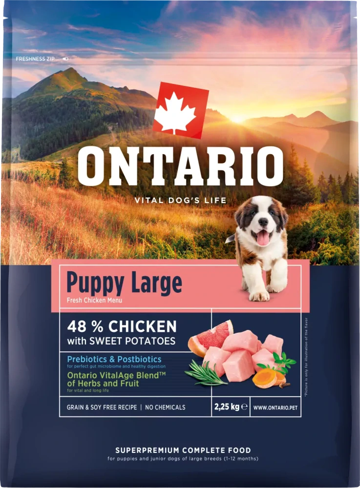 Ontario Puppy Large Chicken & Sweet Potatoes 2,25kgskladem 1 ks399 Kč/ ks