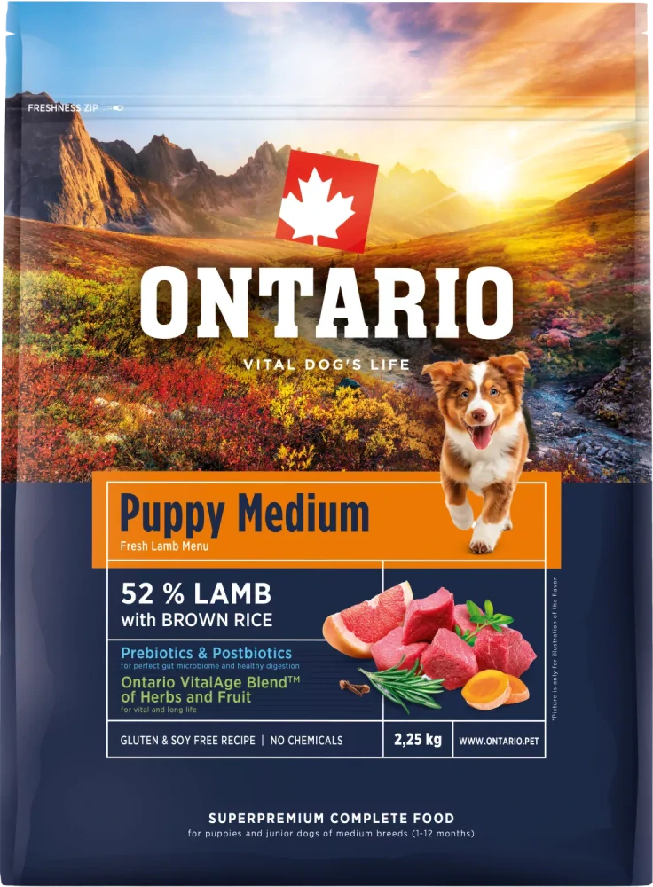 Ontario Puppy Medium Lamb & Brown Rice 2,25kgskladem 1 ks399 Kč/ ks